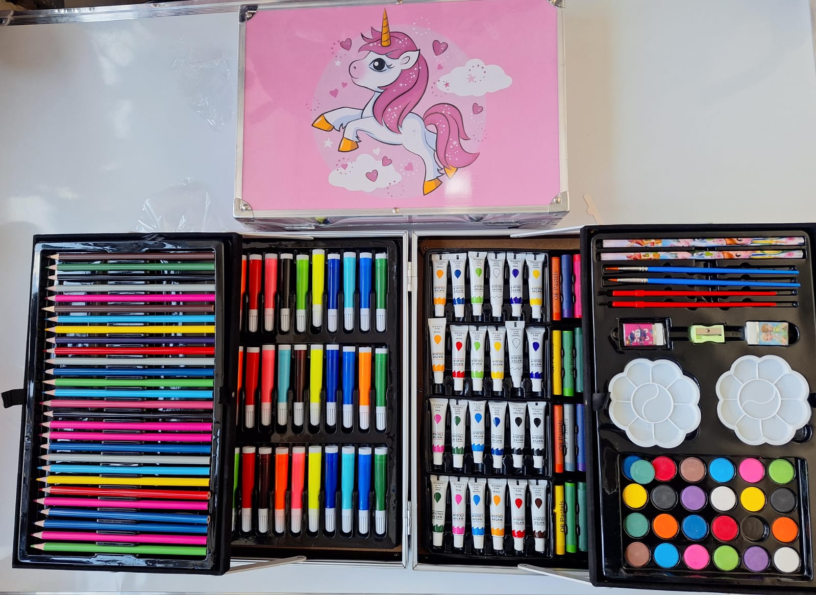 From colored pencils to watercolor pens, oil pastels, and markers, this Aluminum Art Set includes everything needed for endless artistic expression. The aluminum box not only keeps supplies secure and organized but also makes the entire set portable for use at home, school, or on the go.