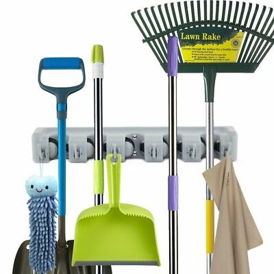 Organize your cleaning tools with the Broom Mop Holder Tidy Organizer. Features 5 anti-slip slots, 6 hooks, wall-mounted design, and durable construction for maximum efficiency.